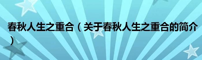 本文關于春秋人生之重合的簡介就講解完畢,希望對大家有所幫助。