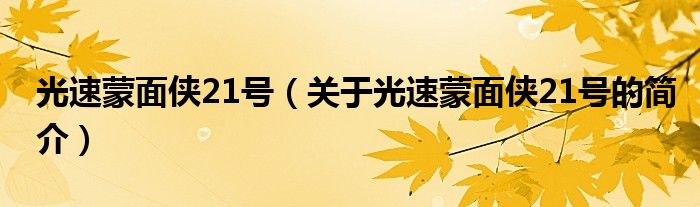 本文關于光速蒙面俠21號的簡介就講解完畢,希望對大家有所幫助。