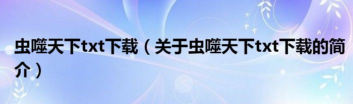 本文關于蟲噬天下txt下載的簡介就講解完畢,希望對大家有所幫助。