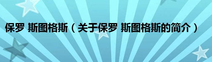 大家好,保羅 斯圖格斯,關于保羅 斯圖格斯的簡介很多人還不知道,現在讓我們一起來看看吧!
