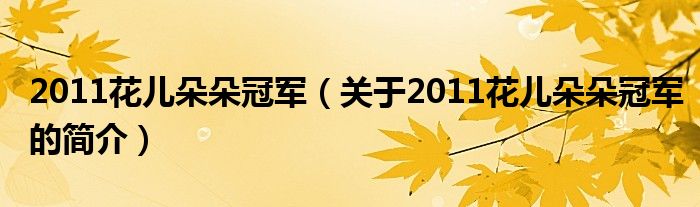 本文關于2011花兒朵朵冠軍的簡介就講解完畢,希望對大家有所幫助。