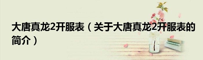 本文關于大唐真龍2開服表的簡介就講解完畢,希望對大家有所幫助。