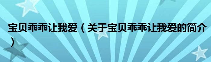 大家好,寶貝乖乖讓我愛,關于寶貝乖乖讓我愛的簡介很多人還不知道,現在讓我們一起來看看吧!