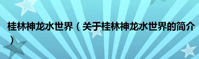 大家好,桂林神龍水世界,關于桂林神龍水世界的簡介很多人還不知道,現在讓我們一起來看看吧!