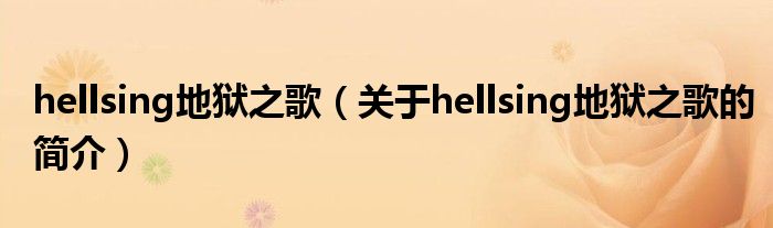 本文關于hellsing地獄之歌的簡介就講解完畢,希望對大家有所幫助。