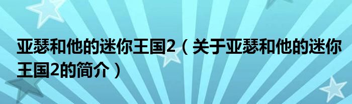 本文關于亞瑟和他的迷你王國2的簡介就講解完畢,希望對大家有所幫助。