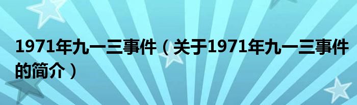 本文關于1971年九一三事件的簡介就講解完畢,希望對大家有所幫助。
