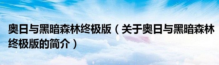 大家好,奧日與黑暗森林終極版,關(guān)于奧日與黑暗森林終極版的簡介很多人還不知道,現(xiàn)在讓我們一起來看看吧!