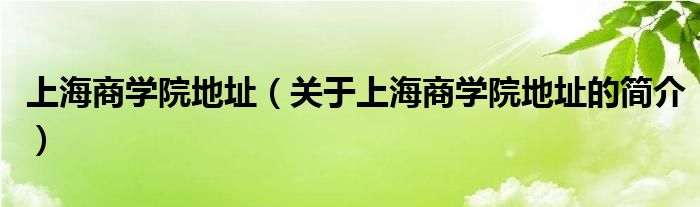 本文關(guān)于上海商學(xué)院地址的簡介就講解完畢,希望對大家有所幫助。