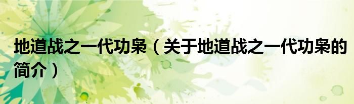 本文關于地道戰之一代功梟的簡介就講解完畢,希望對大家有所幫助。
