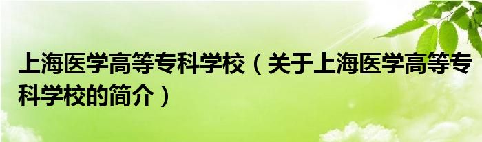 本文關(guān)于上海醫(yī)學(xué)高等專科學(xué)校的簡介就講解完畢,希望對大家有所幫助。