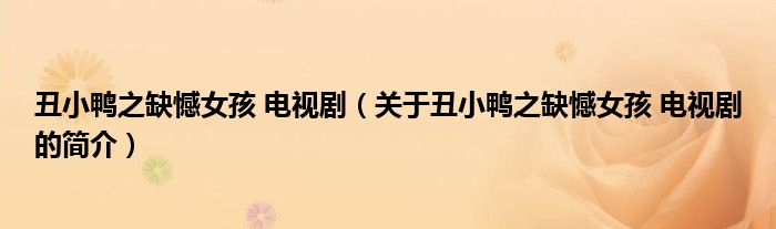 本文關(guān)于丑小鴨之缺憾女孩 電視劇的簡(jiǎn)介就講解完畢,希望對(duì)大家有所幫助。