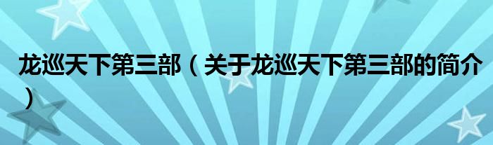 本文關于龍巡天下第三部的簡介就講解完畢,希望對大家有所幫助。
