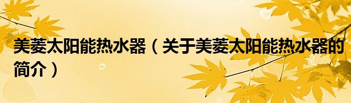 本文關于美菱太陽能熱水器的簡介就講解完畢,希望對大家有所幫助。