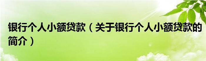 本文關(guān)于銀行個(gè)人小額貸款的簡(jiǎn)介就講解完畢,希望對(duì)大家有所幫助。