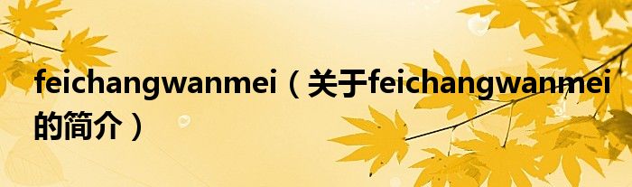 本文關(guān)于feichangwanmei的簡介就講解完畢,希望對大家有所幫助。