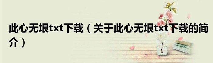本文關于此心無垠txt下載的簡介就講解完畢,希望對大家有所幫助。