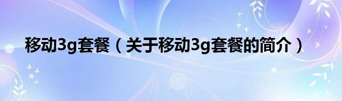 本文關于移動3g套餐的簡介就講解完畢,希望對大家有所幫助。