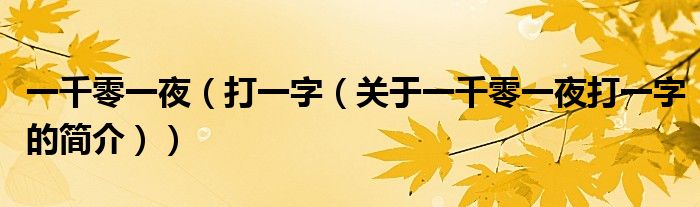 本文關于一千零一夜 打一字的簡介就講解完畢,希望對大家有所幫助。