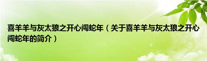 大家好,喜羊羊與灰太狼之開心闖蛇年,關于喜羊羊與灰太狼之開心闖蛇年的簡介很多人還不知道,現在讓我們一起來看看吧!