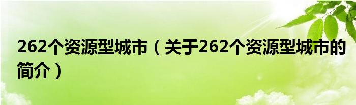本文關于262個資源型城市的簡介就講解完畢,希望對大家有所幫助。