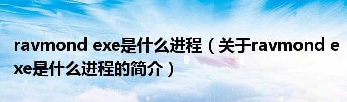 大家好,ravmond exe是什么進程,關于ravmond exe是什么進程的簡介很多人還不知道,現在讓我們一起來看看吧!