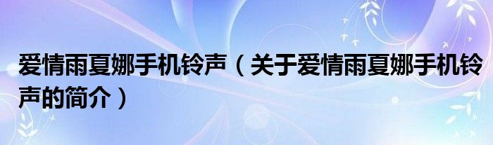 本文關于愛情雨夏娜手機鈴聲的簡介就講解完畢,希望對大家有所幫助。