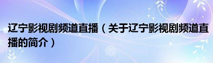本文關于遼寧影視劇頻道直播的簡介就講解完畢,希望對大家有所幫助。