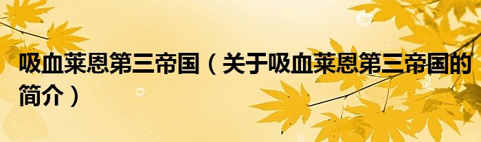 大家好,吸血萊恩第三帝國,關于吸血萊恩第三帝國的簡介很多人還不知道,現在讓我們一起來看看吧!