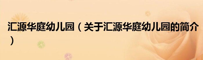 本文關于匯源華庭幼兒園的簡介就講解完畢,希望對大家有所幫助。