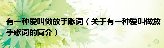 本文關(guān)于有一種愛叫做放手歌詞的簡介就講解完畢,希望對大家有所幫助。