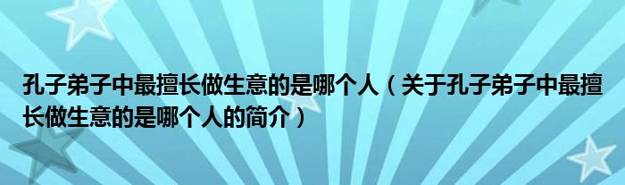 本文關(guān)于孔子弟子中最擅長(zhǎng)做生意的是哪個(gè)人的簡(jiǎn)介就講解完畢,希望對(duì)大家有所幫助。