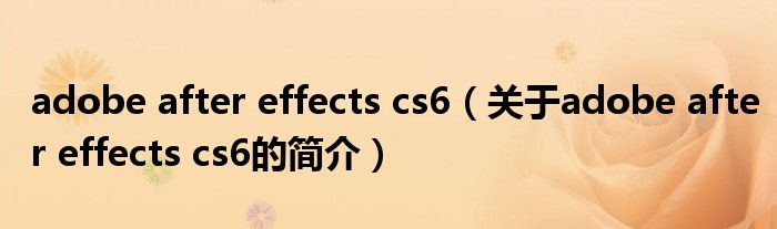 本文關(guān)于adobe after effects cs6的簡(jiǎn)介就講解完畢,希望對(duì)大家有所幫助。