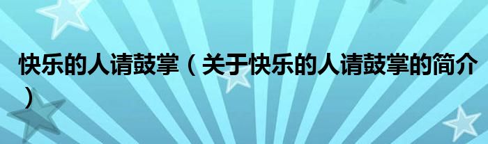 大家好,快樂的人請鼓掌,關于快樂的人請鼓掌的簡介很多人還不知道,現在讓我們一起來看看吧!