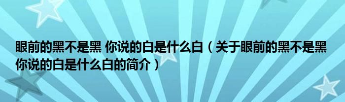 本文關于眼前的黑不是黑 你說的白是什么白的簡介就講解完畢,希望對大家有所幫助。