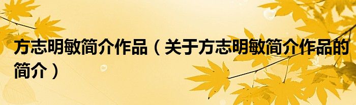 本文關于方志明敏簡介作品的簡介就講解完畢,希望對大家有所幫助。