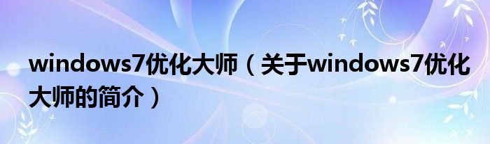 大家好,windows7優化大師,關于windows7優化大師的簡介很多人還不知道,現在讓我們一起來看看吧!