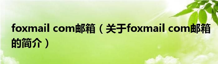 大家好,foxmail com郵箱,關于foxmail com郵箱的簡介很多人還不知道,現在讓我們一起來看看吧!