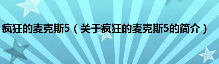 大家好,瘋狂的麥克斯5,關(guān)于瘋狂的麥克斯5的簡介很多人還不知道,現(xiàn)在讓我們一起來看看吧!