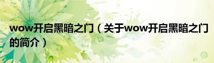大家好,wow開啟黑暗之門,關(guān)于wow開啟黑暗之門的簡介很多人還不知道,現(xiàn)在讓我們一起來看看吧!