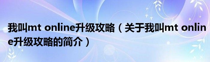 本文關于我叫mt online升級攻略的簡介就講解完畢,希望對大家有所幫助。