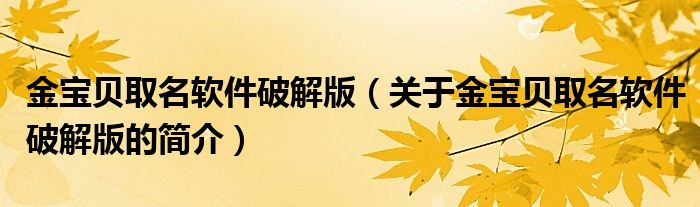 本文關于金寶貝取名軟件破解版的簡介就講解完畢,希望對大家有所幫助。