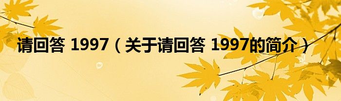 本文關于請回答 1997的簡介就講解完畢,希望對大家有所幫助。