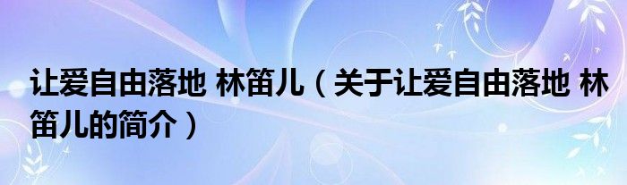 大家好,讓愛自由落地 林笛兒,關于讓愛自由落地 林笛兒的簡介很多人還不知道,現在讓我們一起來看看吧!