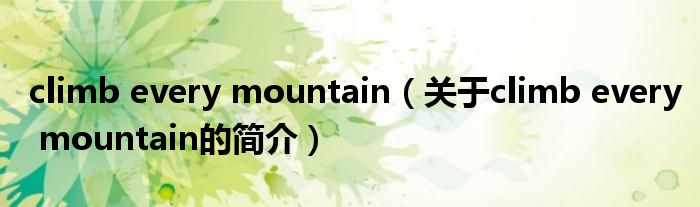 本文關于climb every mountain的簡介就講解完畢,希望對大家有所幫助。