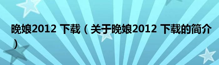大家好,晚娘2012 下載,關(guān)于晚娘2012 下載的簡介很多人還不知道,現(xiàn)在讓我們一起來看看吧!