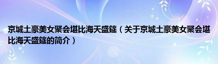 本文關于京城土豪美女聚會堪比海天盛筵的簡介就講解完畢,希望對大家有所幫助。