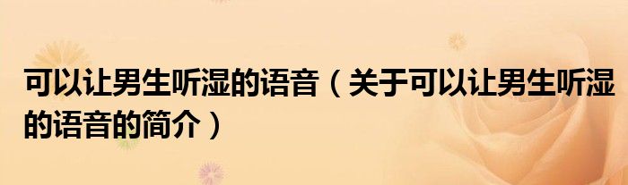 本文關(guān)于可以讓男生聽濕的語音的簡(jiǎn)介就講解完畢,希望對(duì)大家有所幫助。