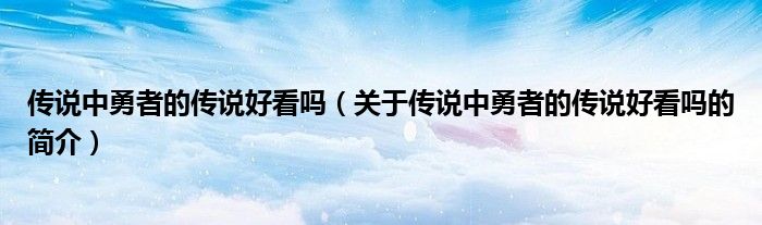本文關于傳說中勇者的傳說好看嗎的簡介就講解完畢,希望對大家有所幫助。