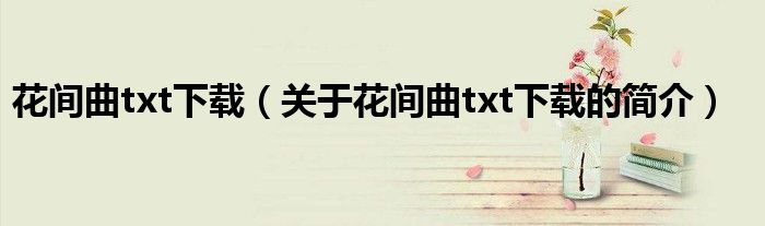 本文關于花間曲txt下載的簡介就講解完畢,希望對大家有所幫助。